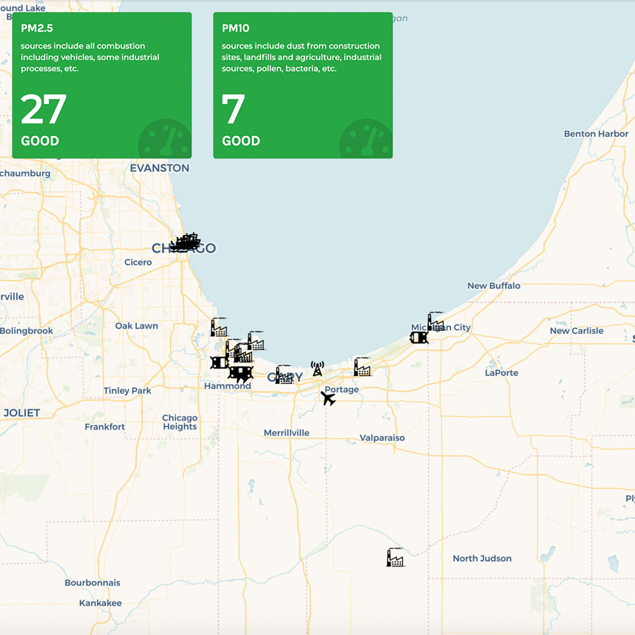 Tracking the air quality in Miller Beach, Gary, IN, from a community-funded air sensor.